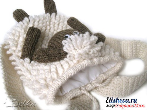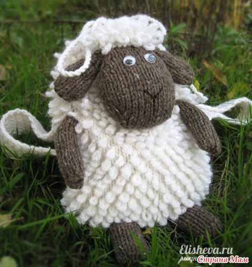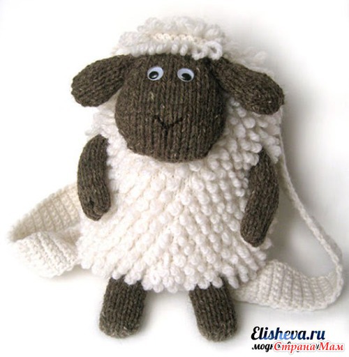 Рюкзак «Веселая овечка» вязаный спицами и крючком.