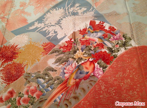 Хотя , конечно , в первоначальном виде кимоно будет храниться в шкафу и доставаться иногда.А на стене всякий входящий сможет полюбоваться красивыми участками.