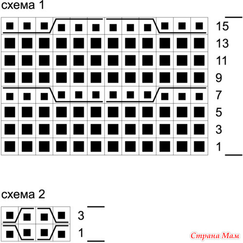 Узор 2: вязать по схеме 2.