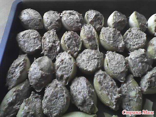 -заливаем ракушки так, что бы соус почти полностью покрывал их...