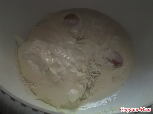 у меня майонез, сметана, немного муки и пару яиц(это ошибка о которой я говорила)