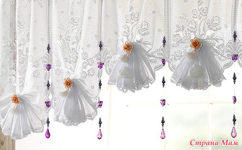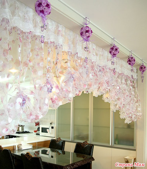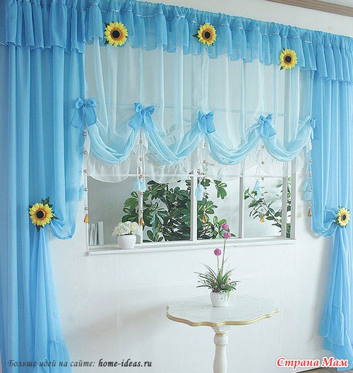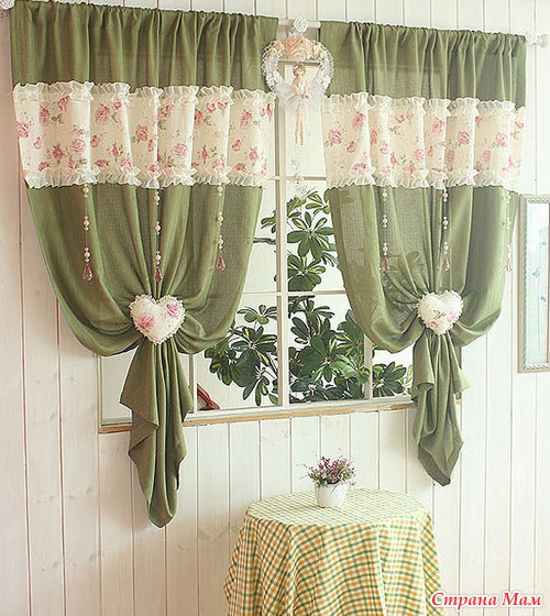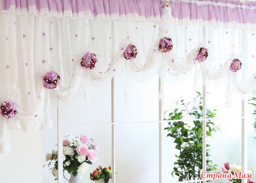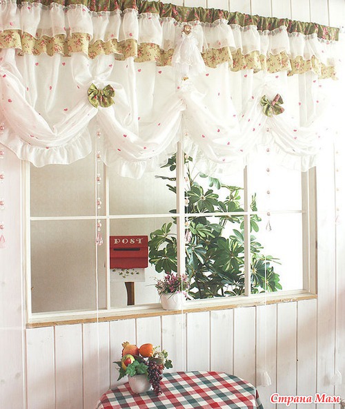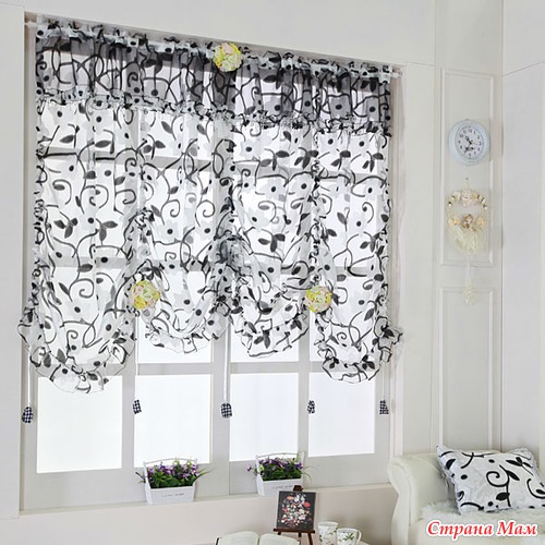 Маленькие кухни требуют много света, поэтому наиболее подходящим вариантом для них станут полупрозрачные гардины. Редко у кого возникает необходимость плотно зашторивать кухонное окно, если только в него не попадают прямые солнечные лучи. Поэтому в основном мы прибегаем именно к декоративному оформлению, когда занавеска незначительно перекрывает доступ света. Чаще всего на наших кухнях встречаются два вида штор: подъемные (римские или австрийские) и укороченные раздвижные. Казалось бы, выбор для хозяев невелик, но если проявить фантазию, подобрать хорошие ткани и добавить элементы декора, можно создать очень красивые занавески, которые сделают кухню нарядной и будут радовать хозяев каждый день, заряжая хорошим настроением. Моя сегодняшняя галерея штор для кухни состоит как раз из таких красавиц, желаю всем интересных находок и побольше идей для вдохновения! Эти фотографии занавесок для кухни, найденны на сайте одного южнокорейского магазина.