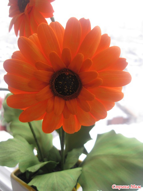{Хвалите меня, хвалите. Я еще чего нибудь придумаю. Очень уж приятно. Фактуру листьев делала в два этапа сначала тонировала, потом теплыми делала оттиск на цветочном молде, а затем усиливала фактуру стеком. Да серединка тоже самодельная -черная полоска шириной 1см нарезазать в мелкую лапшу, собрать на проволоке улиткой. распушить лапшу, макнуть в клей затем в смесь кофе с крашенной манкой - дать высохнуть. Девочки постараюсь отснять мк , тогда выложу подробные фотки, а не сумбурное обьяснение