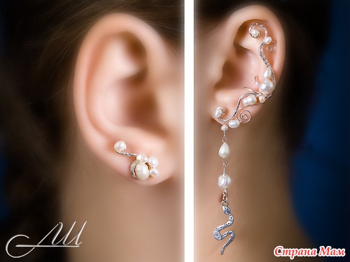 Кафф подойдёт и для не проколотых ушек. Крепится за счёт небольших скобочек, которые слегка обжимаются вокруг наружного завитка ушной раковины.