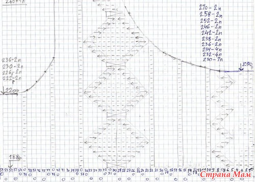 С 140 по 188 ряд в каждом 6 ряду прибавлять с каждой стороны по 1 петле 8 раз.