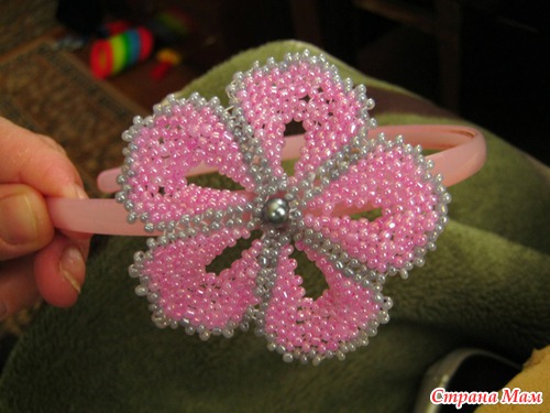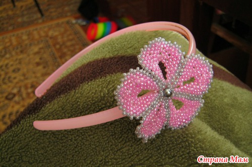 Но поскольку у меня не кулон, а цветок на обруч, то делала одинарный (не подплетала второй слой).