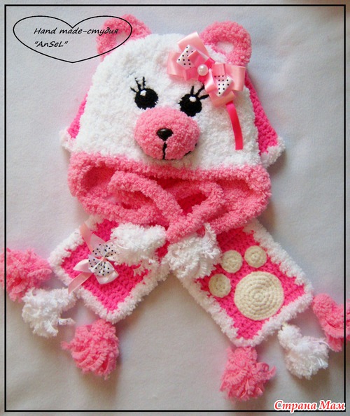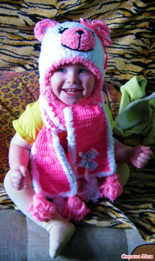 вот такой комплектик я связала на весну для одной маленькой девчушки)))ну что тут поделаешь, любят мои заказчики медведей! пряжа картопу анакузусу и беби вита. крючки 4.5 и 3.5. бантики тоже сама делаю.