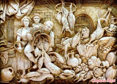 Сергей Карпенко Заслуженный художник Украины. Резьбой занимается с 18 лет. Сергей родился в 1965 году в городе Козятин. Провёл 15 персональных, а также участвовал во многих всеукраинских и международных выставках. «…Те, кто посещали экспозиции, утверждают что картины Сергея Карпенко как-будто наделены какой-то необыкновенной силой, которая излучает тепло и поглощает все негативные эмоции человека, они как-бы лечат человеческие души…». Картины Карпенка Сергея находятся в частных коллекциях Украины, Бельгии и США.