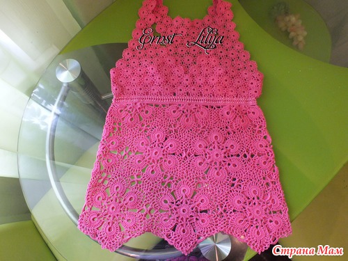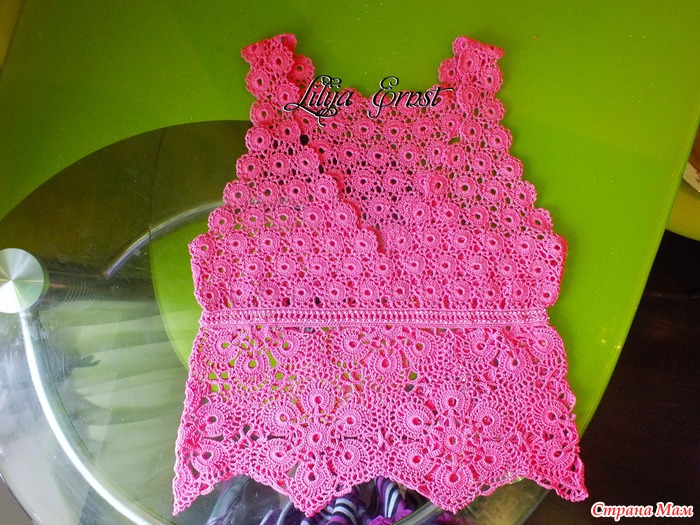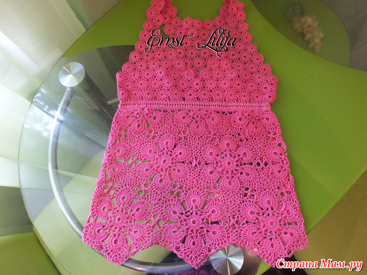С моей точки зрения это самый удобный и рациональный способ вязания мотивов для этого платья.