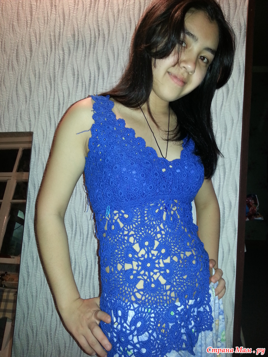 Я связала подол из целых мотивов, сейчас ковыряю кокетку.