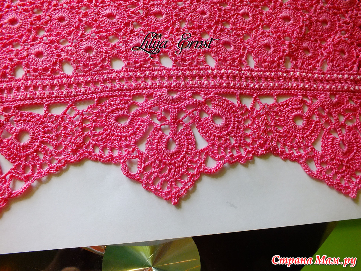 Вот такую оборку нашла Альбина ( руси) для низа платья. Только нужно довязать один фестончик.