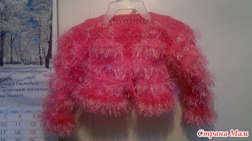хорошенькое болеро я крестнице своей вязала жилетку из травки сто лет назад, теперь вот в хотелках курточка. Надо как-нибудь выбраться в твой район за нитками