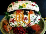 Украшаем кусочками овощей. Прикроем сундучек пленкой, чтобы не заветривал.