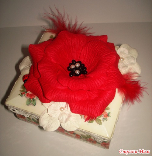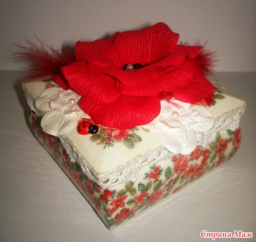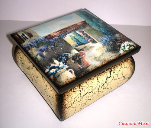 Эту шкатулку я начала года полтора назад. Декупаж сделала, но идея, выходившая за границы декупажа, никак не хотела оформляться