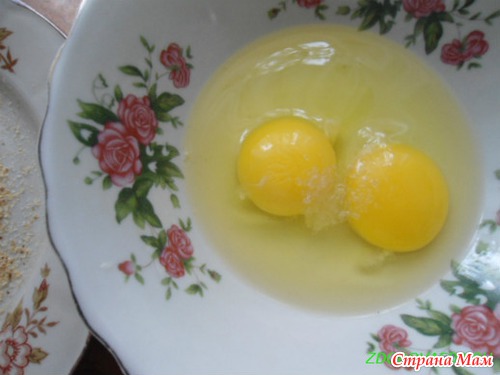 Яйца хорошо взбить, добавив 1столовую ложку холодной воды и щепотку соли.