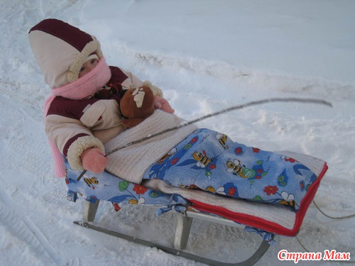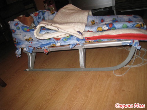 Вернулись, как то, ко мне по-наследству мои же санки, ну вид у них, уже конечно, не совсем презентабельный, но санки совдеповские и мы решили не покупать новые, а облагородить старые. Ну вот и получился такой чехол для санок.