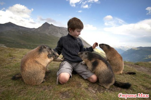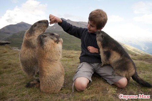 Альпийские сурки очень пугливы, при виде людей они стучат зубами и пытаются свистом предупредить сородичей о приближающейся опасности. Но от обычного мальчика Маттео Вальча они не пытаются сбежать, а наоборот бегут к нему поиграть и получить сладости.