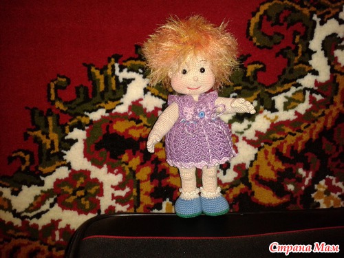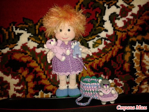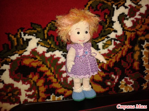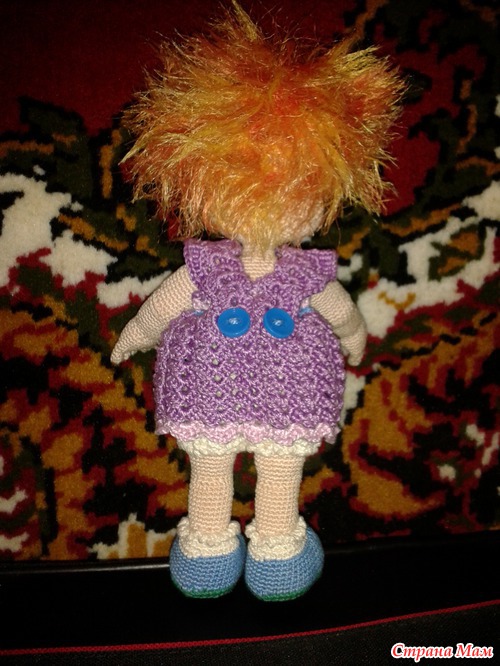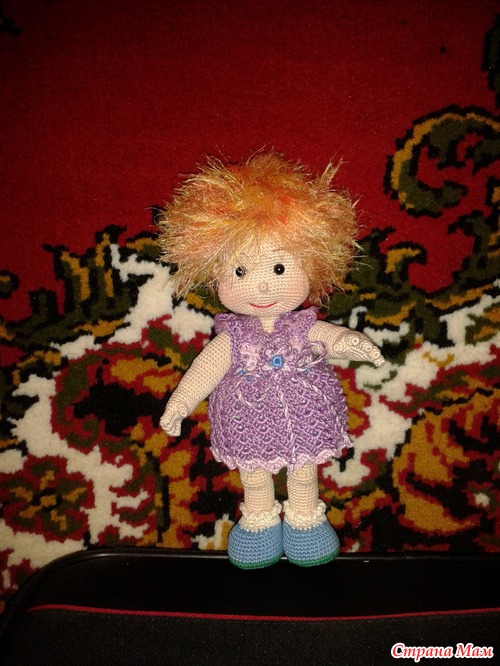 Вязала куколку в онлайне на форуме "Рукодельное зазеркалье" http://natulina.ukrainianforum.net/ - описание куколки Элли, автор Натулина. Связана хлопковыми нитками, волосы из "Техно". Спасибо автору за такую куколку.