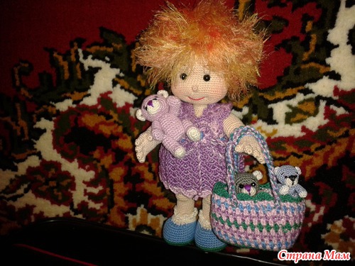 Вязала куколку в онлайне на форуме "Рукодельное зазеркалье" http://natulina.ukrainianforum.net/ - описание куколки Элли, автор Натулина. Связана хлопковыми нитками, волосы из "Техно". Спасибо автору за такую куколку. Мишки связаны по описанию Елены Никитиной. Читать полностью
