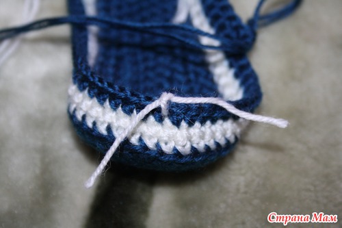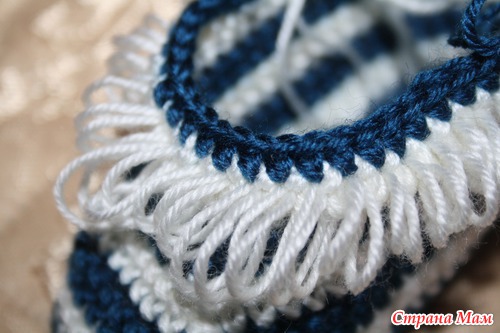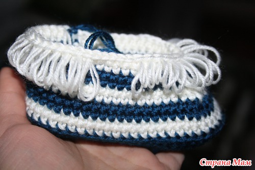 свяжите две цепочки из в. п.(на оба ботинка сразу)