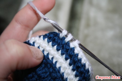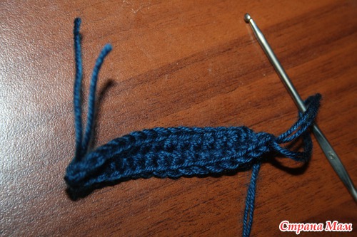 следующий ряд вяжется в одну петлю один ст. б./н, но протяжку делать только за заднюю стенку. следующий ряд в одну петлю один ст. б/н.