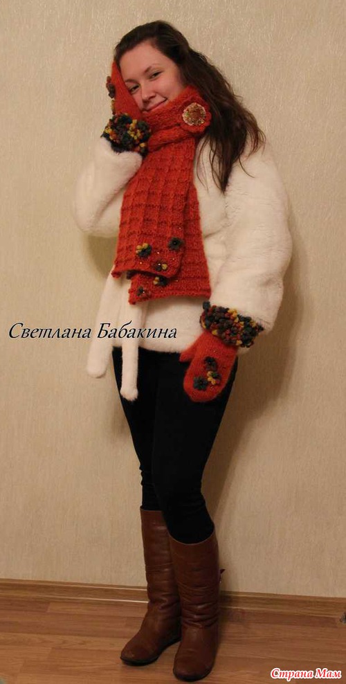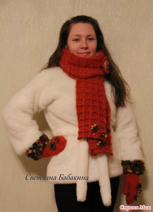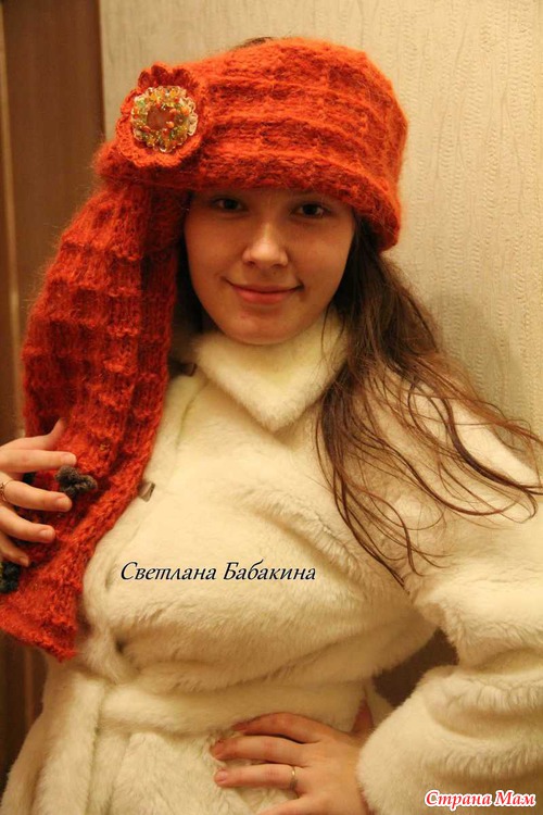 Вязала дочке комплект на зиму, но шарфик оказался очень громозским и я решила его видоизменить, вот что у меня получилось.