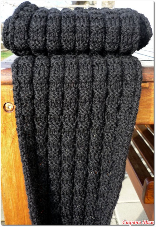 Супер, я очень давно ищу что-то такое, обещала мужу Только я не спец в таких делах, подскажите пожалуйста новичку как шарфик вяжется...я правильно читаю: 3 лиц., 1 изн. - 3 ряда, 3 изн. а потом? 1 лиц, ?
