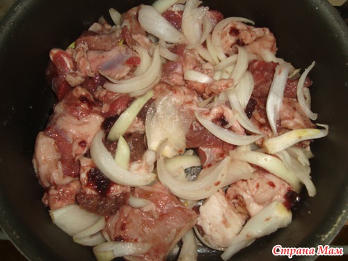 уложим туда сырую баранину