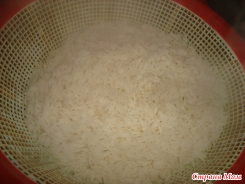 Рис сварим до полу готовности, ну 3мин закипит рис в кипятке и все можно откинуть на душлак