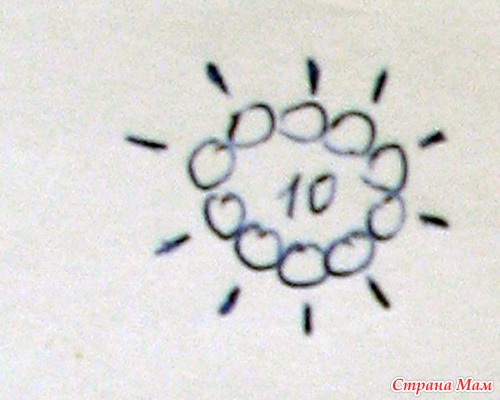 Цветоножку вяжу так: 10-12 петель замыкаю в кольцо и обвязываю СБН (или ССН )необходимое кол-во рядов.