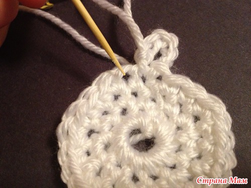 20. Вяжем 1 воздушную петлю для подъема следующего ряда. И обвязываем наш кружочек вокруг-11 столбиками без накида.