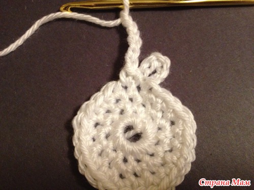 2. Соединительной петлей, соединяем цепочку с 1ой петлей.