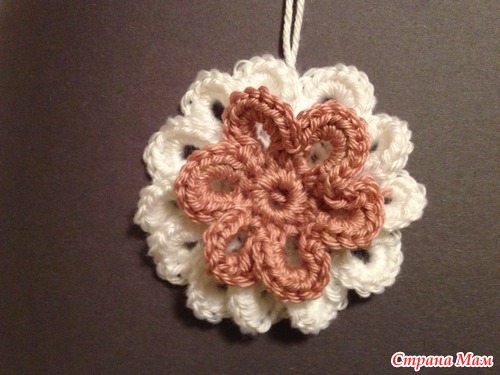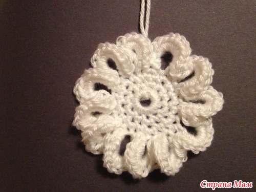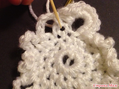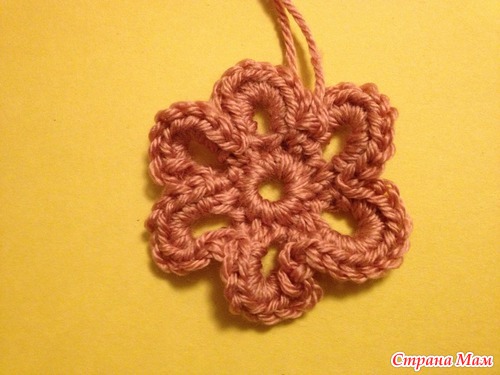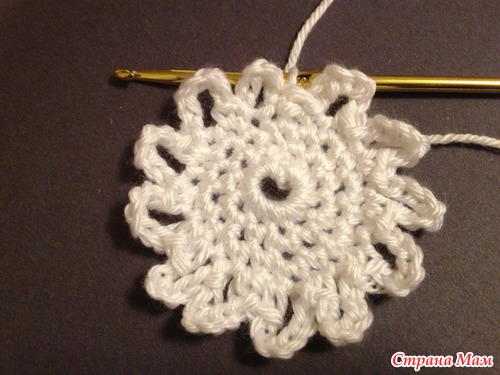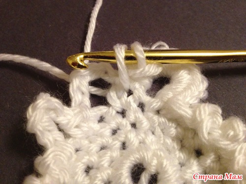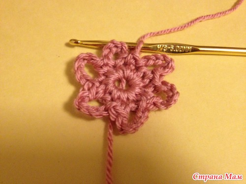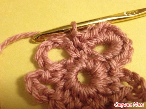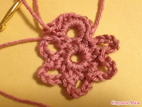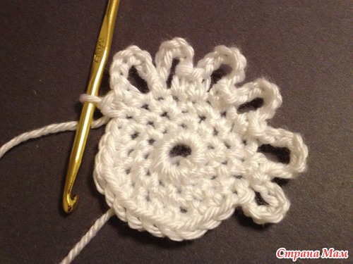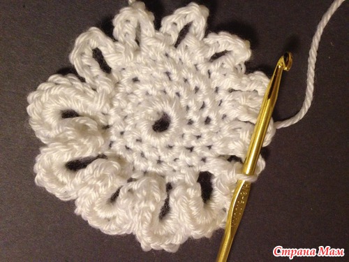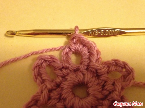 14. Обратим внимание на промежуток между лепестками. Это и есть тот один ст. без накида который мы вязали.
