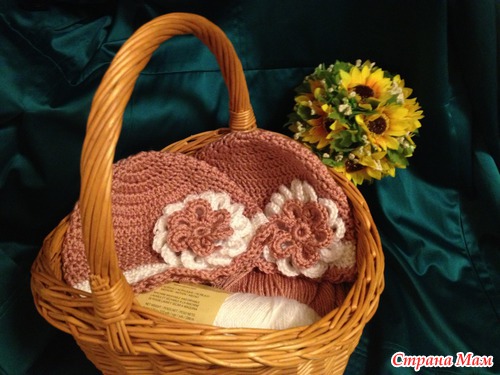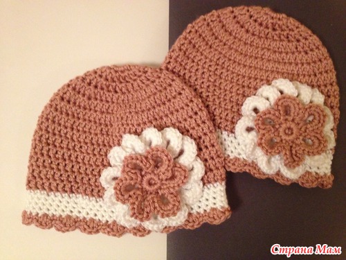 28. И украшаем таким милым цветочком нашу кофточку, шапочку... Вот такие две шапочки я связала двум сестричкам( они младшие сестры моего мужа(ходят в 5 класс), в подарок. Так как у них 1 год разница, то я им связала одинаковые шапочки. И украсила такими цветочками. Как вам?