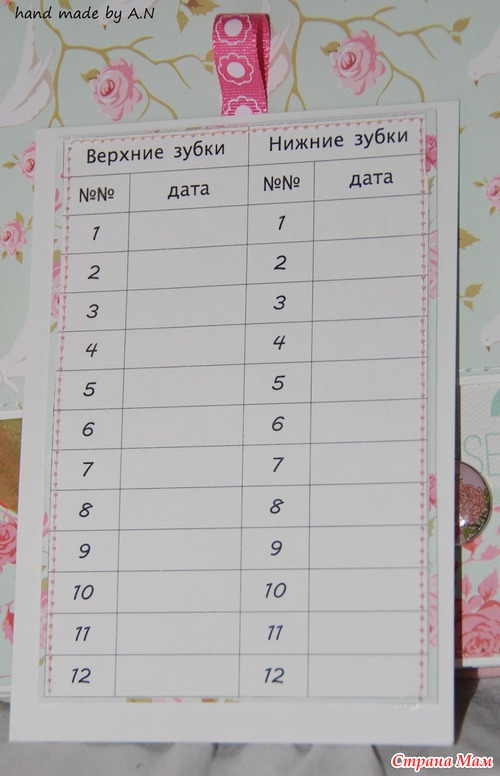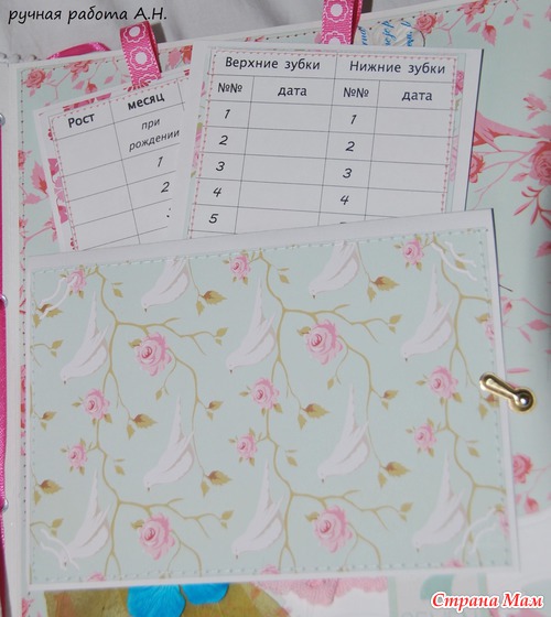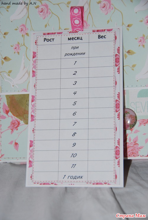 Альбом получился 21-26 по обложке, 6 листов (14 страниц) вмещает 34 фото 10-15, 1 фото 13-18, горафик рост вес, карточка с зубками, конвертики для бирочки, для мелочей, для локона. Ну что смотрим???