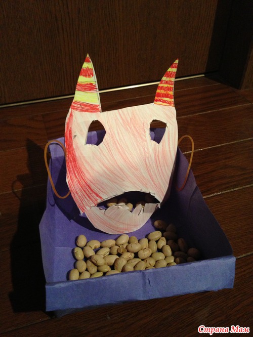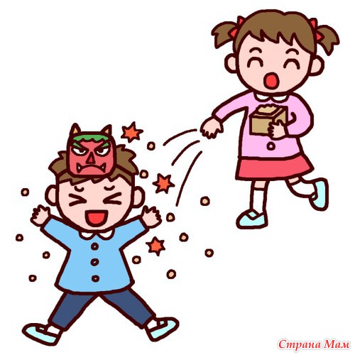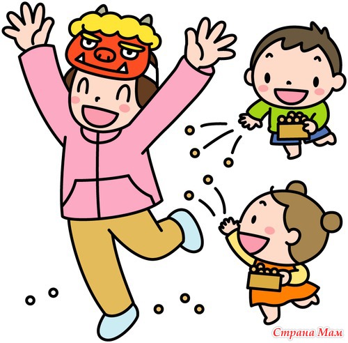 Викпендия пишет, что бобы разбрасывают святилища, а мы все годы бросаем бобы на улицу (демон (папа в маске) у нас приходит с улицы), наверно, что бы потом по дому бобы не собирать