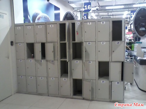 У нас, даже в нашем отдалённом от центра раионе, в супермаркете не самого высокого уровня есть стойка, за ней вот такие ящики, ключи с номерками, которых на каждом ключе болтается две штуки. Сдал "багаж" , получил один брелок с номером. Вернулся - отдал сотруднику второй брелок - получил взамен багаж из указанного ящика. ПОтерял брелок? Заплатишь за него, потом получишь свой "багаж".