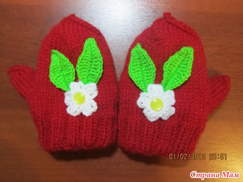 Связала к ним варежки и не просто варежки. Купила в магазине махровые варежки за 26 рублей и связала для них варежки. Одела варежки на варежки и соединила. Варежки получились теплые.
