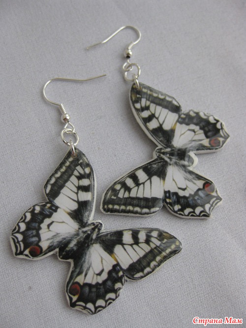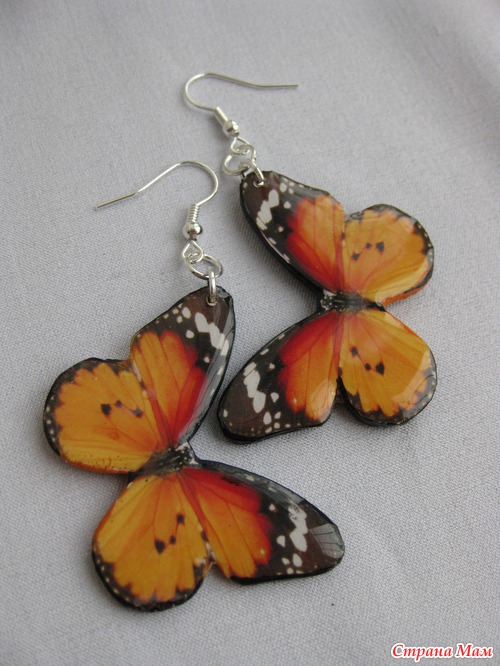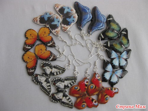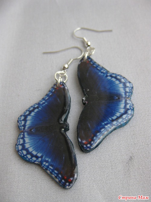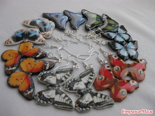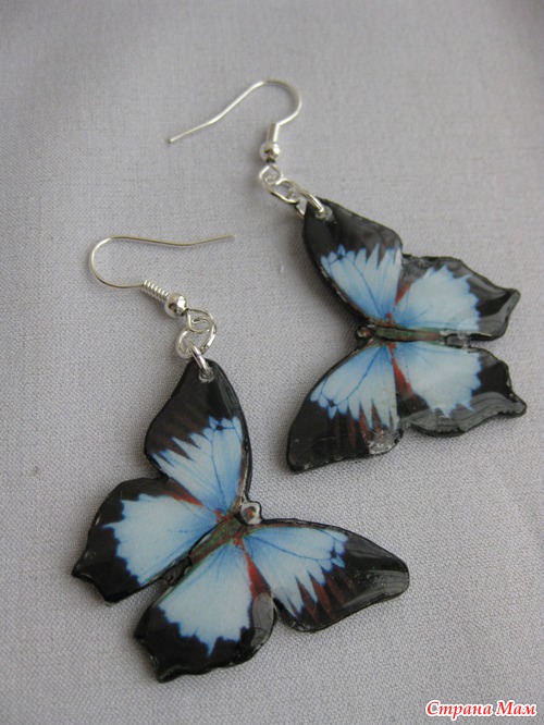 5. Декупажим! то есть приклеиваем бабочек (или другие картинки) на свои основы и покрываем на 2-3 слоя клеем, для того, чтобы эпоксидка не просочилась к картинке и не испортила ее! Клей нужен декупажный или обычный ПВА.