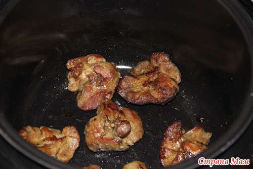 Печенка готовится быстро и получается очень нежной, прям паштет. В мультиварке решила пожарить потому что от высокой температуры печенка начинает "стрелять" а если сковородку накрыть крышкой, то выделяется сок. В мульте же все отлично пожарилось и жидкости не было.