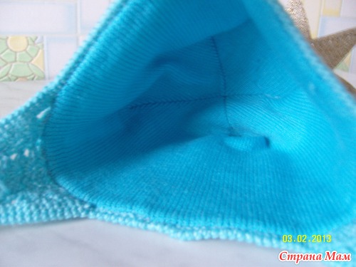 Внутри подкладка из тонкого трикотажа, потому как пряжа колется, да и потеплее так