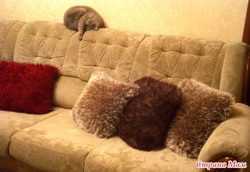 ) соответственно возникает вопрос куда их девать?? сначала подарю всем родственникам, а потом хочу продавать, как вы думаете, готовая подушка 45 на 45 см, внутренности из холлофайбера по 600 рублей это нормально?? и конечно, скажите свое мнение, будет ли она смотреться в современном интерьере?? что мне нравиться, что теперь я могу себе сшить подушку любой формы, моя мечта длинная и круглая подушка, для того чтобы класть руку и ногу засыпая, что скажете дорогие девочки???А это я наволочки готовые на свою сверковушку примеряла, как вам такие шапка и манто? ))))