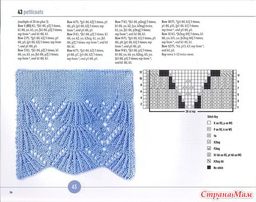 У всех прошу прощения: только сейчас добавляю схему практически того же узора, которым связан верх костюма. У меня, к сожалению, не сохранилась использованная схема. Только у меня после вееров еще провязано несколько рядов изнаночной вязки для образования выпуклой полосы по краю веера.