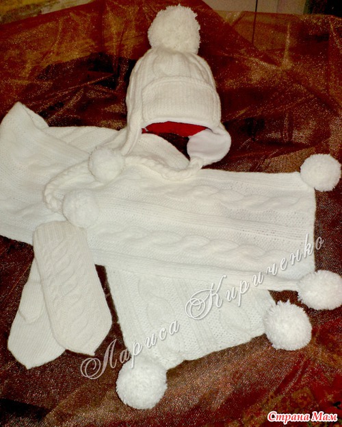 Спасибо! Девочке моей 21 год, но выглядит она на 14-16 летнего подростка. Личико маленькое, сама худенькая... Вязала из весовой пряжи (моток выходит где-то грамм 300). Думаю грамм 400-450 ушло, но мы планируем чуть-чуть надвязать шарф и добавить помпонов по всему краю шарфа. И ещё руковички связаны из Alize (уж очень люблю руковички тоненькие, тем более, что уже и на улице тепло)