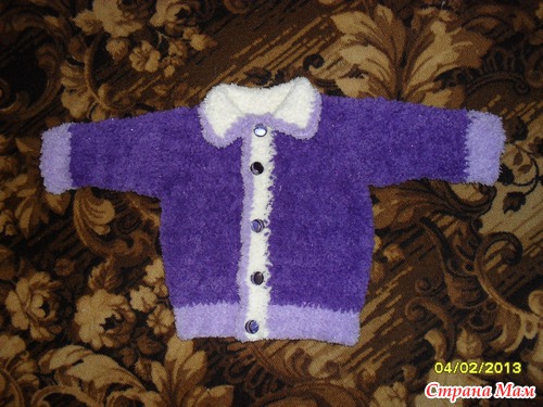 Пряжа- YarnArt, 100 г - 175 м. Ушло 300 г фиолетовой, сиреневой и 100 г сереневой. Вязала крючком 3,5 столбиками с накидом. Обвязка столбиками без накидов. Получился очень теплый и мягкий.
