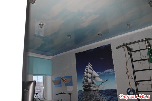 Забыла совсем. Я ж потолок натяжной сделала облаками, мне кажется что больше о нем мечтала, чем сын