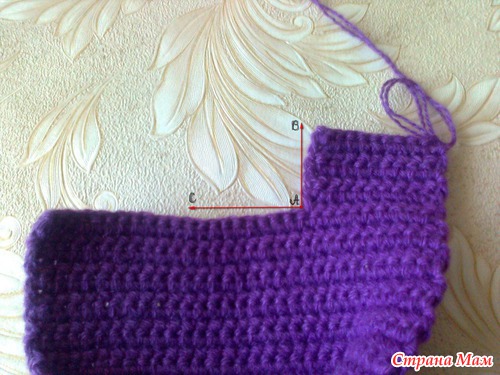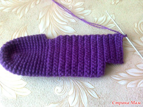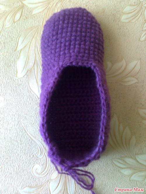 Вяжем тапок длиной до пятки.