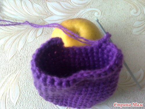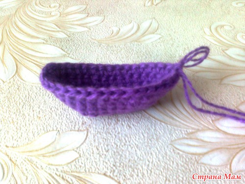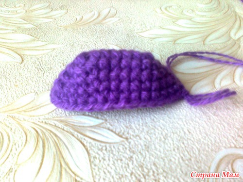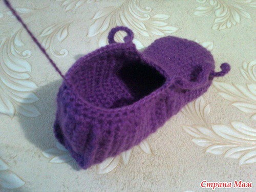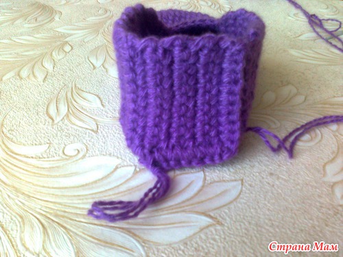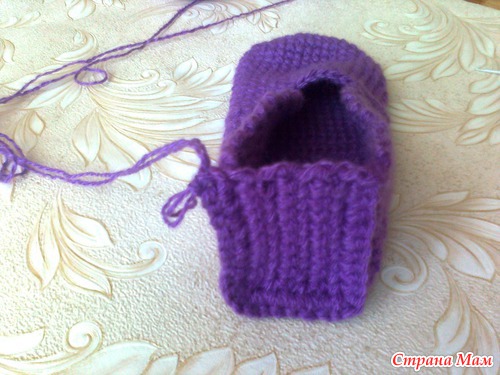 Сверху. Можно на этом закончить вязание, но я хочу сделать тапки со шнурками. Поэтому рабочую нитку ещё не оборвала.