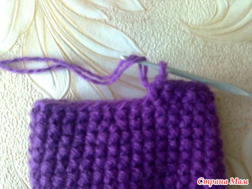Делаем воздушную петлю, разворачиваем полотно и продолжаем вязание. Проще говоря, вязать надо "туда-сюда". Таким образом формируются боковые стороны тапочка и подошва.
