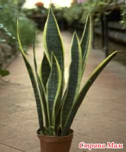 Растение семейства агавовых (по некоторым источникам - драценовых) в диком виде произрастает в Центральной Африке, Шри-Ланке, Малайзии. Названо по имени итальянского князя Сансевиеро, жившего в XVIII веке. Вечнозеленое растение с декоративными мясистыми мечевидными прямостоячими листьями высотой до 1 метра и 2,5-7 см ширины, плотными, кожистыми. Цветки собраны пучками на длинном цветоносе, белые или зеленоватые, душистые. Есть формы с листьями светло- и темно-зеленых тонов, с кремовыми полосками, с желтыми полосами по краю листа, с серебристо-зелеными листьями и более темными полосами. Низкорослые розеточные формы сансевиеры менее популярны, но тоже неприхотливы. В Великобритании сансевиеру называют тещин язык, в США - змеиная коса, у нас получило название щучий хвост - за поперечные полосы на кожистых листьях, напоминающие чешую рыбы.